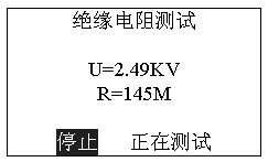 此時按確認(rèn)鍵(ENTER)進(jìn)入“正在測試”,顯示測試電壓和電阻值。