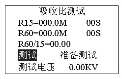 開機(jī)后直接按功能鍵“R60/15S”進(jìn)入圖2,選擇電壓確認(rèn)后進(jìn)入“吸收比測試”準(zhǔn)備: